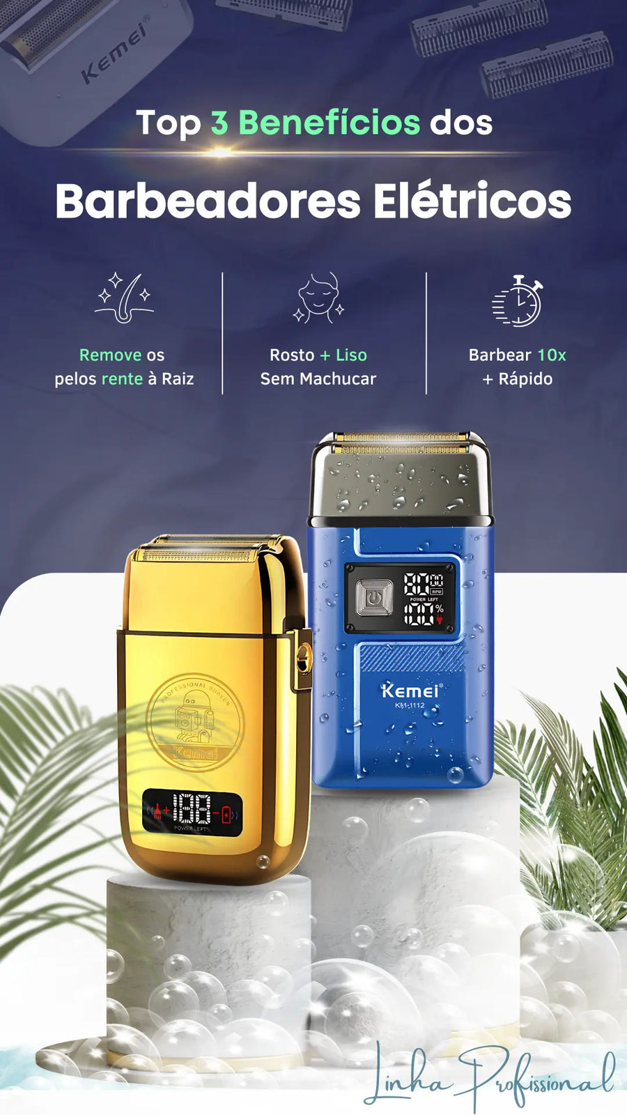 Kit Aparador À Prova D'agua Km-1838 + Barbeador Elétrico Km-2024 | Kemei ®